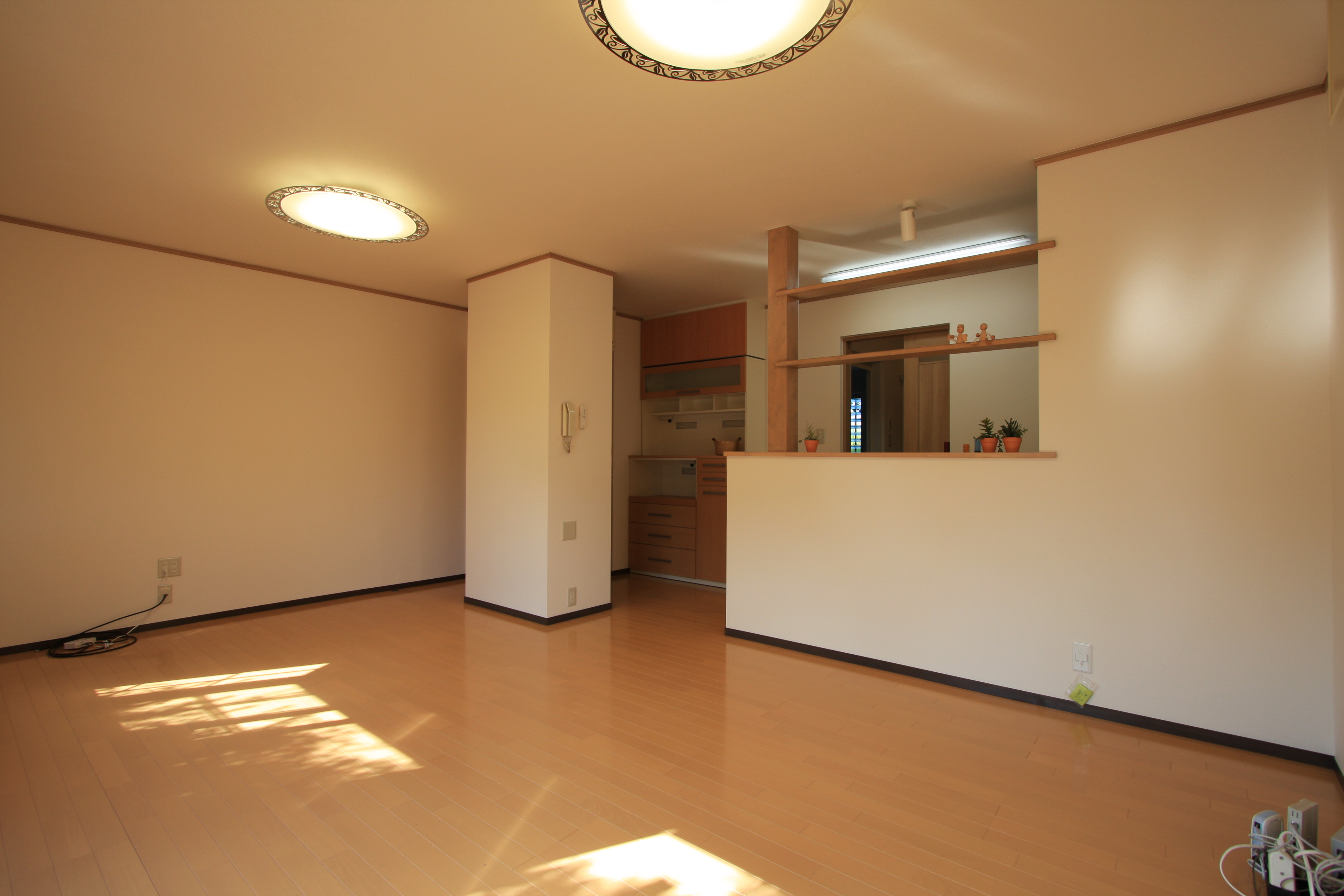 同時に水まわりリフォームをしたので、キッチン、水まわりの位置は変わり対面キッチンのLDKにしました。