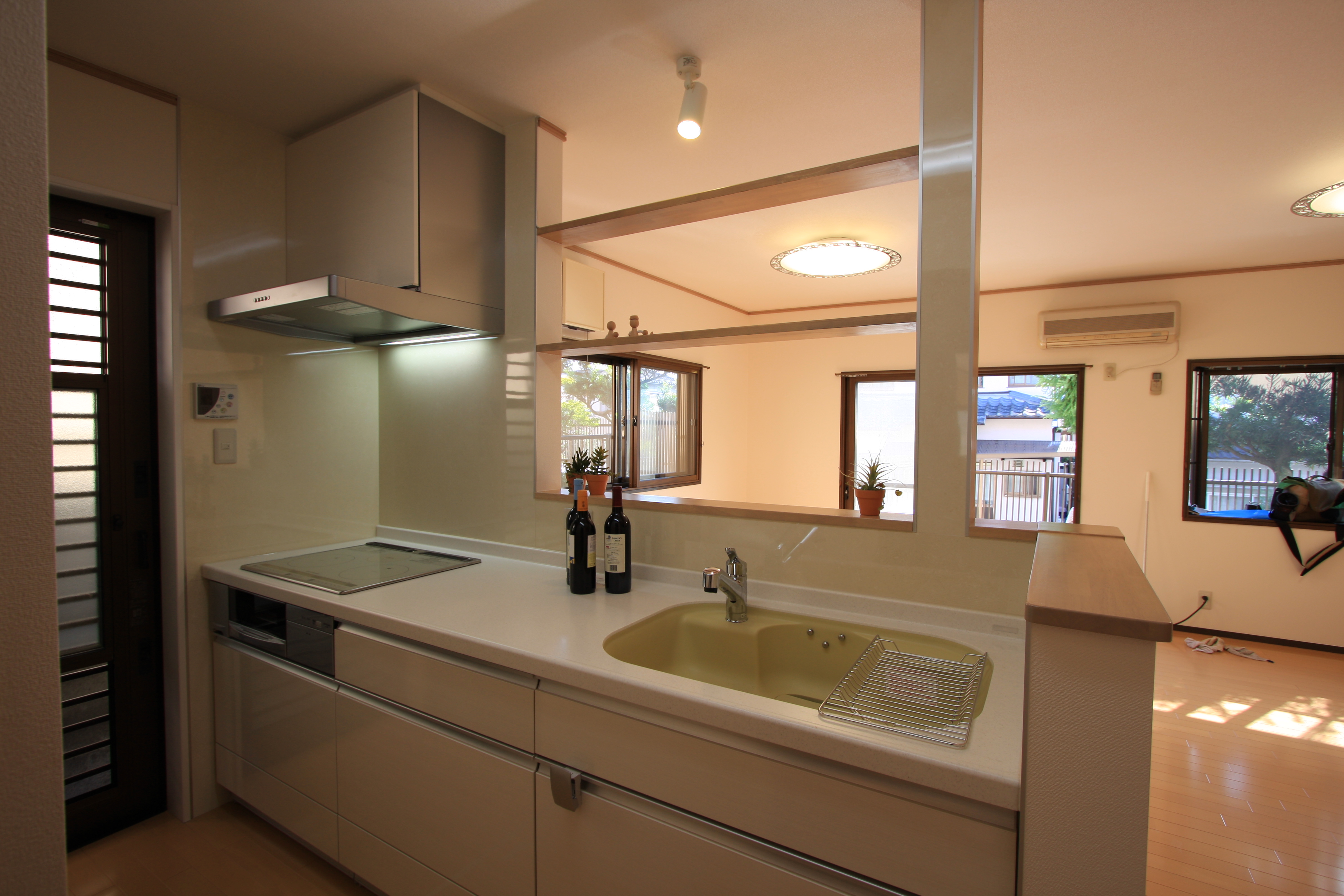 キッチンは側面の勝手口と背面の洗面からの明かり、通風などが得られ快適性がアップしました。