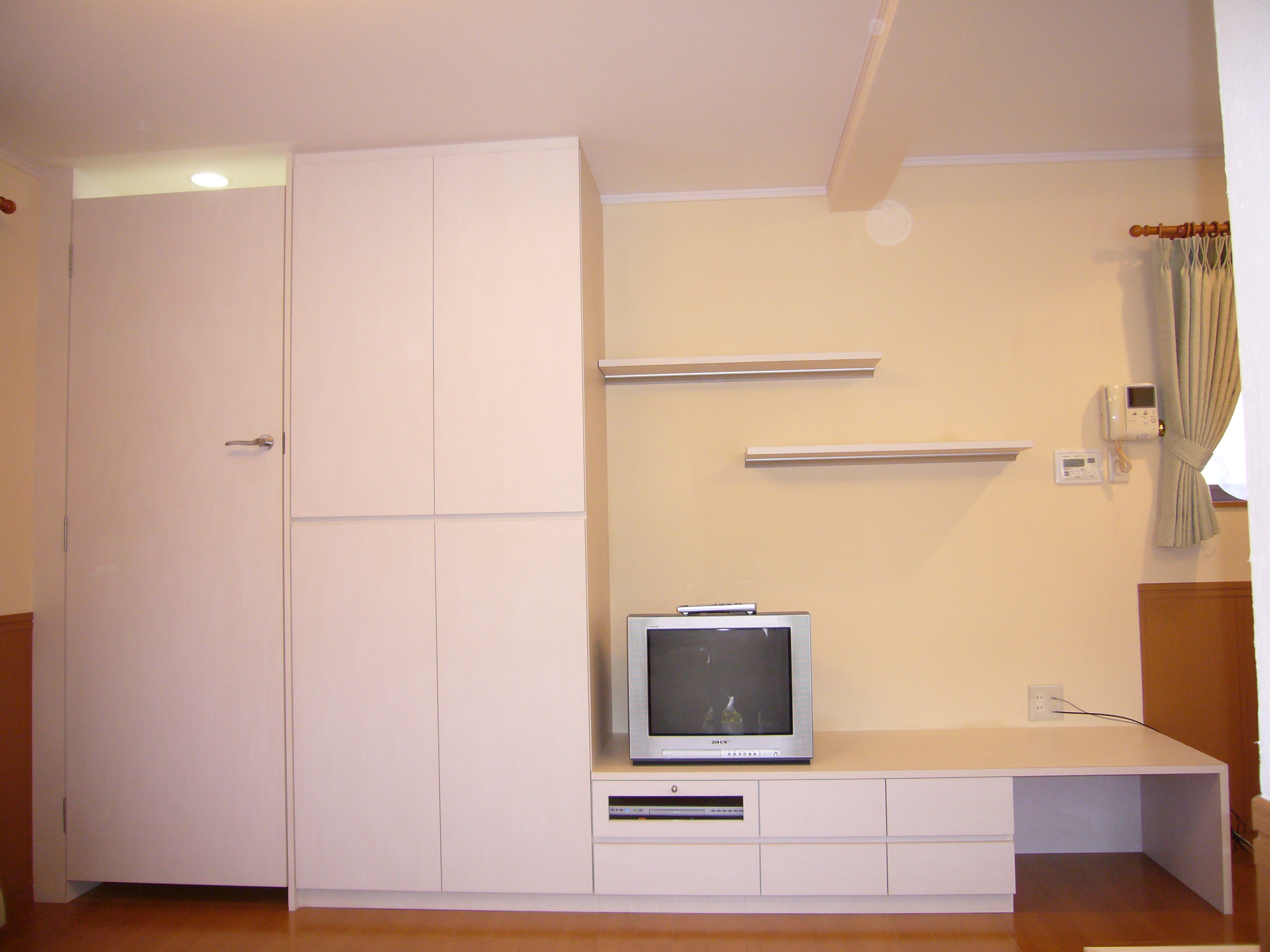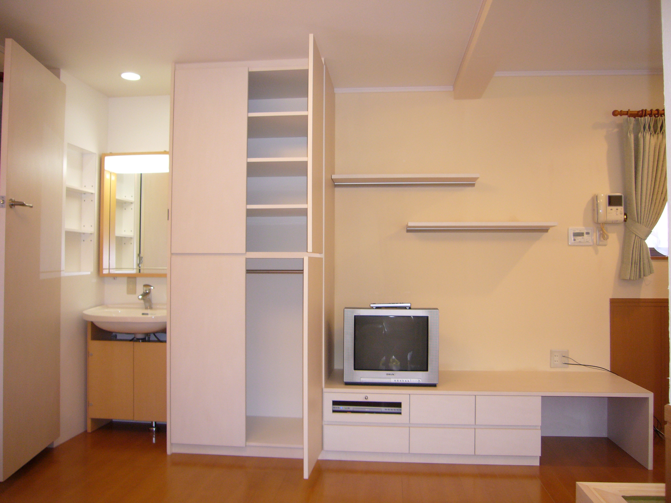 着替え、子どもの勉強道具やあそびの用品、家庭の事務作業、化粧や水繕いなど意外に使用目的が単純でなく、想定外の物の出入りがあり、それらの品がおさまることなく置かれます。