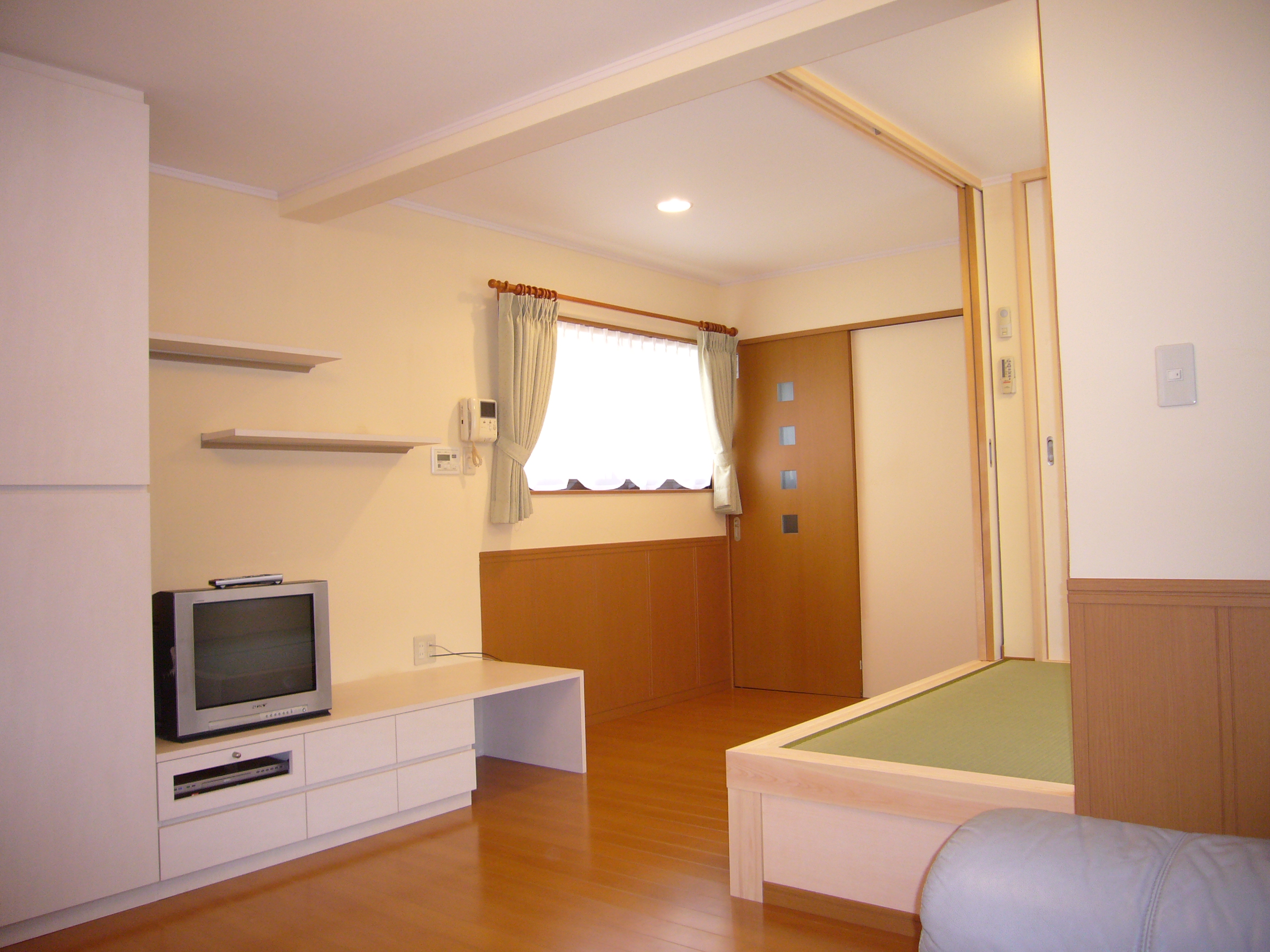 タタミコーナーは下部の引き出し収納や間仕切りできるように引き込み戸で開閉できます。