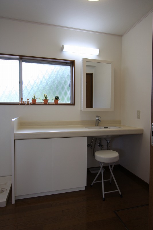 既存洗面の位置変更でスペースを広げ、お化粧も出来るドレッサーカウンタータイプの洗面台に。