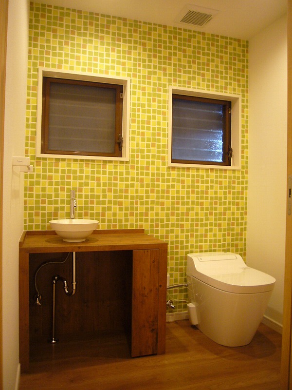グリーンのアクセント壁でやさしい色合いのトイレになりました。